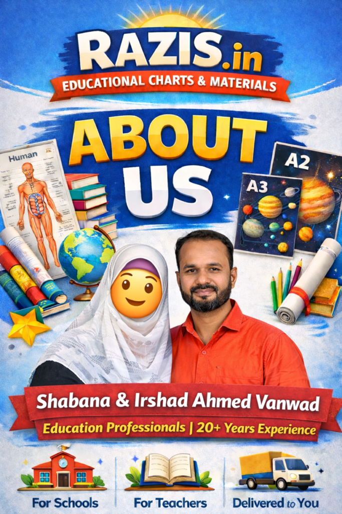 Razis.in is an educational material platform dedicated to providing high-quality printed educational charts for schools, teachers, students, and parents across India. We specialize in A3 and A2 size educational charts, carefully designed to support effective classroom teaching and visual learning.
